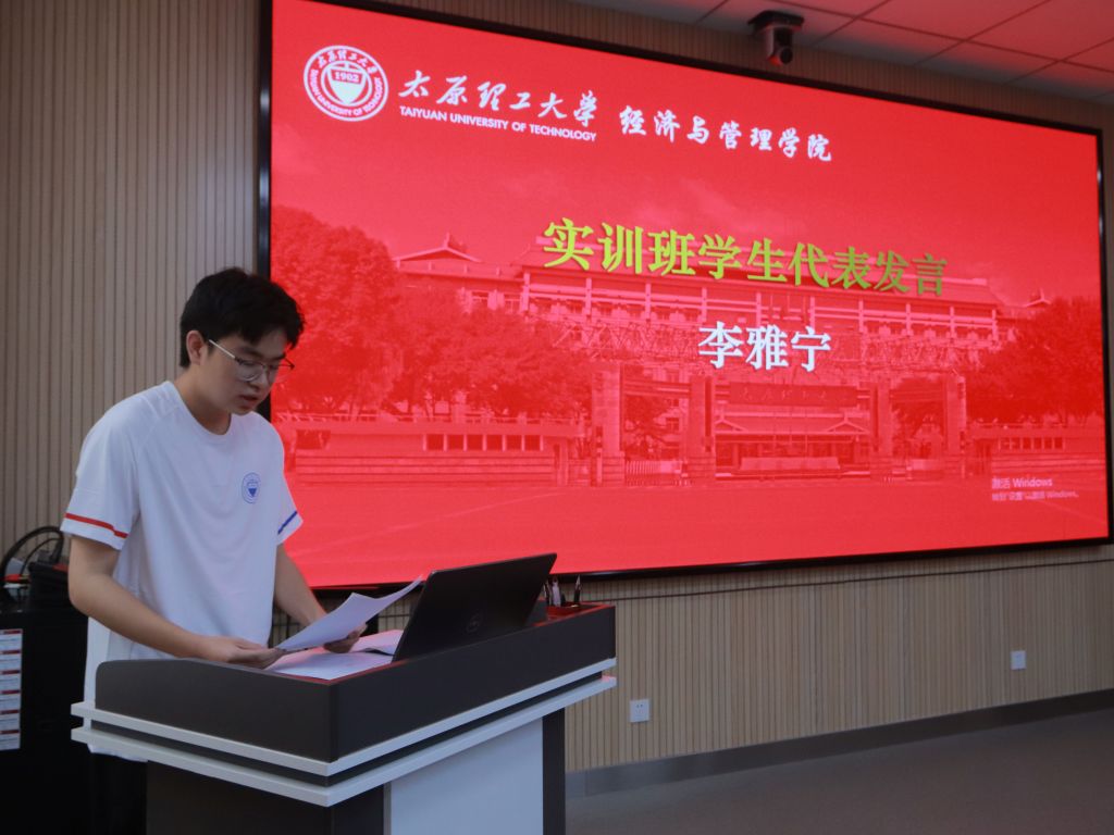 学生代表李雅宁在发言中表达了全体学员对参与此次宝贵实训机会的热切期盼与高涨热情,展现了积极汲取新知、勇于实践探索、矢志担当作为的坚定决心,承诺将全力以赴,在实训中锤炼专业技能与创新实践能力。