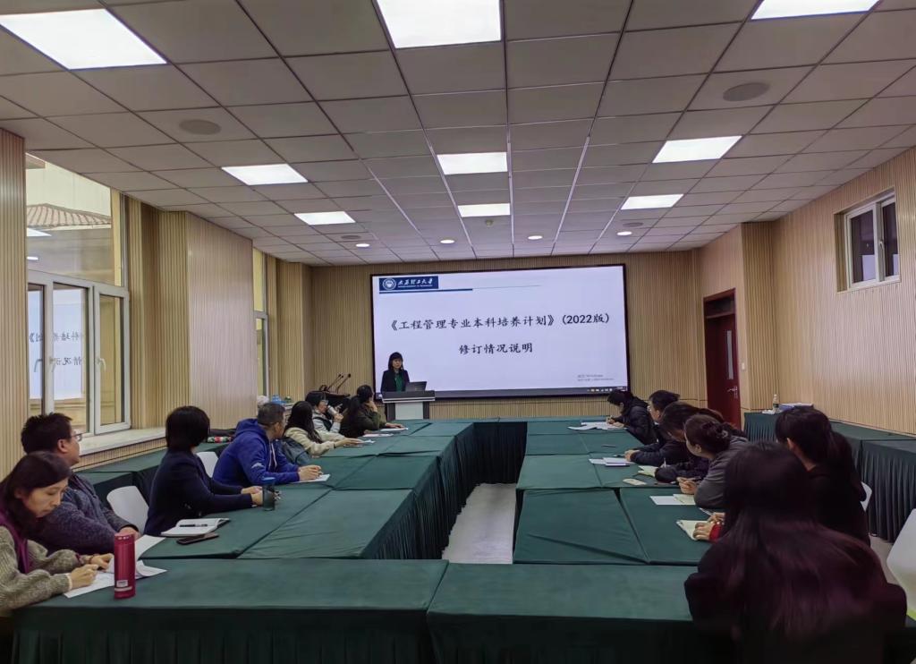 副院长姚西龙主持了工程管理专业2022 版本科课程教学大纲修订研讨会,张荣霞老师对工程管理专业人才培养方案(2022 版)进行了说明,副院长姚西龙对工程管理专业评估工作进行了总结,对评估工作中各位老师的辛勤付出表示了感谢和表扬,号召工程管理专业所有老师继续发扬专业评估过程中的“愿担当、敢担当、善担当”的工作作风,群策群力做好工程管理专业教学大纲修订及教学工作的持续改进,积极推进工程管理国家一流本科专业的建设工作,管理科学系参会老师对教学大纲修订中的问题进行了交流。