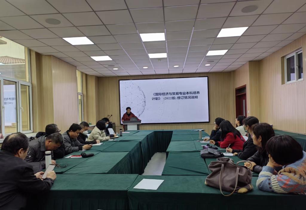 副院长姚西龙主持了国际经济与贸易专业2022 版本科课程教学大纲修订研讨会,陈龙梅老师对国际经济与贸易专业人才培养方案(2022 版)进行了说明,副院长姚西龙对国际经济与贸易专业教学大纲修订的要求进行了说明,指出了国际经济与贸易国家一流本科专业建设难点与重点,要求经济贸易系老师要团结一致,老教师和新教师一起做好经济贸易专业的课程教学和实验室建设工作,扎实推进国际经济与贸易国家一流本科专业的建设工作,参会老师对教学大纲修订中的问题进行了交流。