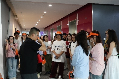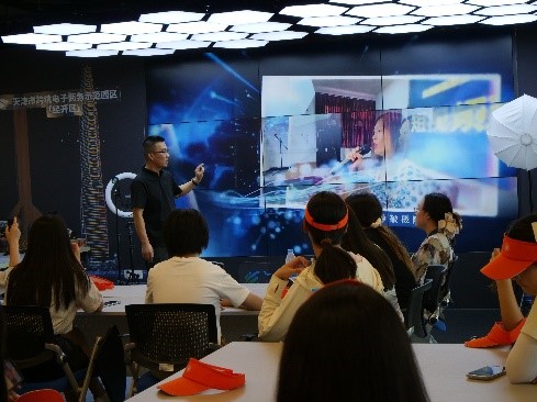 在天津市跨境电子商务示范园区,园区负责人魏兵带领同学们参观了园区保税商品交易展示中心、跨境电商直播基地、及跨境电商创新试验区,魏兵为大家详细介绍了跨境电商运营模式、数字通关场景、跨境贸易系统、供应链数字化管理及一站式仓储供应链等场景和解决方案。