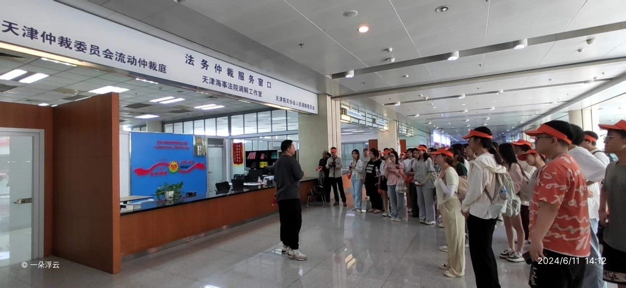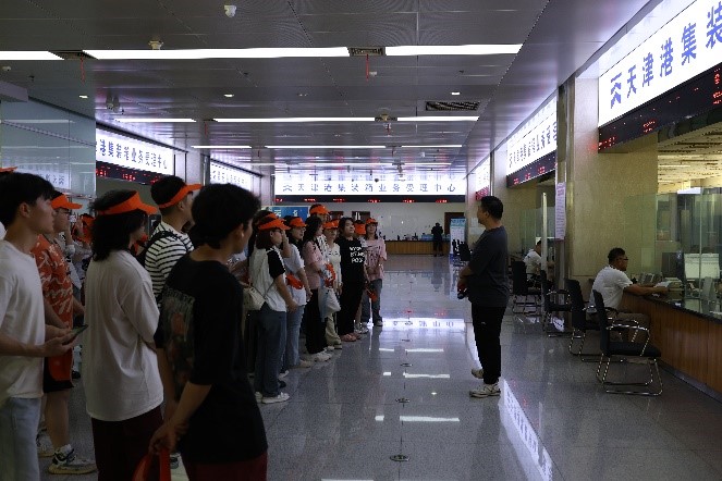 在天津国际贸易与航运服务中心,中心业务部负责人王国恩部长带领同学们参观了天津海关报关窗口、天津港集装箱业务受理中心、天津港法务仲裁服务窗口(天津海事法院调解工作室、天津报关协会人民调解委员会)、中华人民共和国北疆海事局、天津海关电子口岸等服务部门。在参观过程中,王国恩结合外贸实务,为大家详细讲解了海关海事的工作流程、外贸纠纷的法务仲裁程序、天津市国际贸易与天津港航运的基本情况,并鼓励大家刻苦学习,争做新时代外贸领头人,提升我国在制定国际贸易规则中的话语权。