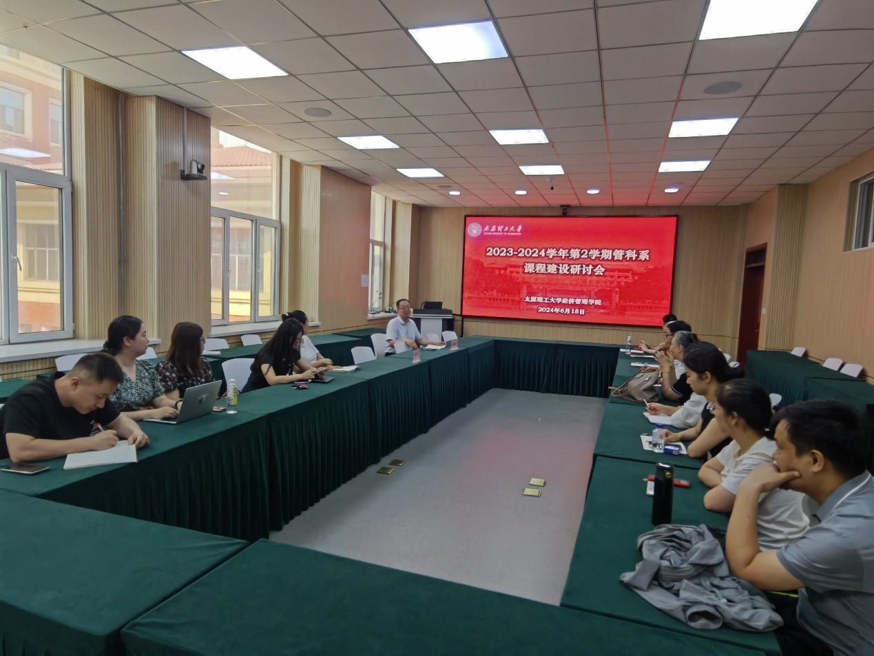 6月18日,管科系在学院229会议室召开本学期课程建设研讨会,共享课程建设的智慧,共同探讨课程建设的未来,院长栗继祖教授和副院长姚西龙教授到会指导,管科系全体教师参加会议,会议由系副主任何学松副教授主持。