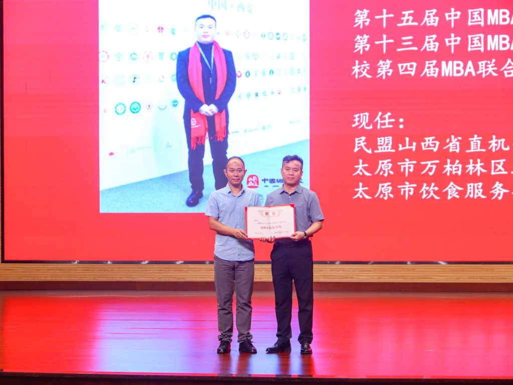 院党委书记闫新为周健晓先生颁发了MBA校友导师聘书、副院长陈怀超为周健晓先生颁发专硕名人堂证书。
