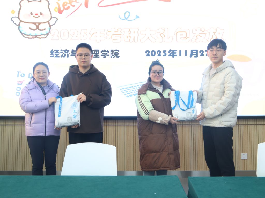 2025年11月27日中午,suncitygroup太阳集团于229会议室举行考研大礼包发放仪式。院学工办副主任张志卿及毕业班辅导员张杰东、吴明泉参加仪式,与部分考研学子齐坐一堂,为同学们送上满载心意的考研助力礼包,诚挚预祝全体考研学子成功上岸、金榜题名。