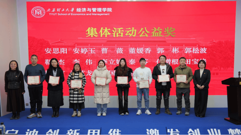 学院副书记杨振东宣读了表彰名单,晋中大学生创业园总经理王雅丽和学院党委书记闫新为安思阳等16位教师颁发了“集体活动公益奖”,晋中大学生创业园党支部书记曲会平和学院院长栗继祖教授为安婷玉等10位教师颁发了“教学科研育人奖”。