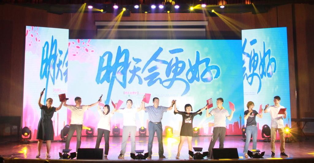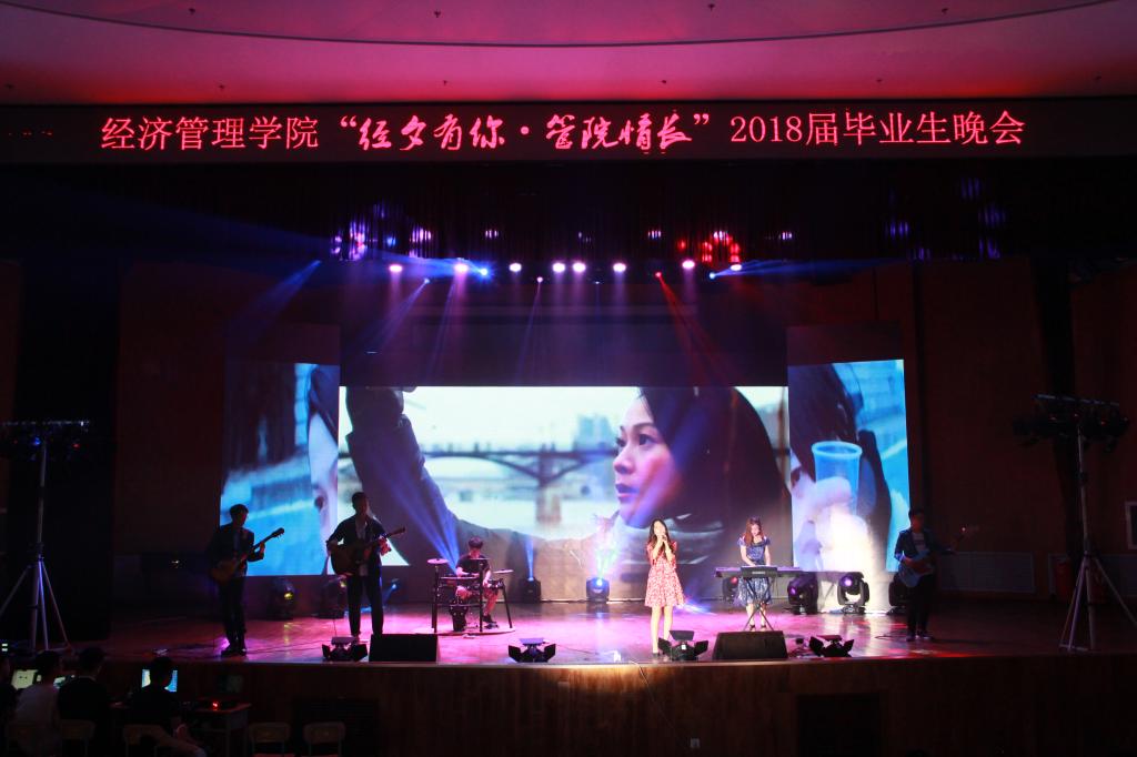晚会上,除了记录大学四年点滴的视频和学生自编自演的节目,最令毕业生们感动的还是平时在课堂上威严端庄、学识渊博的教师们为他们精心准备的节目:经贸系教师身着节日的礼服,声情并茂地演唱与朗诵送上的《相逢是首歌》打动了在场的每一位毕业生;会计系师生们以手语表演的《感恩的心》告诉孩子们感恩这个伟大的时代;工商管理系教师别出心裁,用各自家乡的方言朗诵《再别康桥》引发高潮迭起的掌声让大家感受到了家的温暖;栗继祖副院长与管理科学系的教师与台下同学同唱《明天会更好》,为毕业生送上最真诚的祝福。