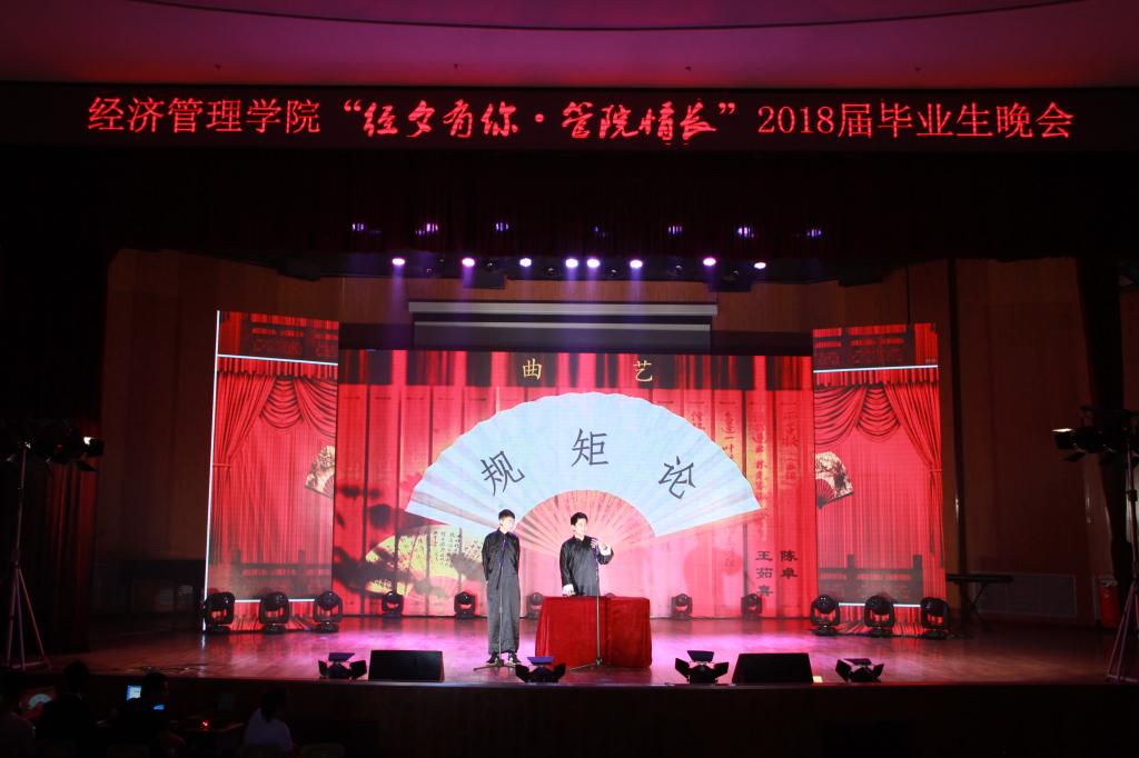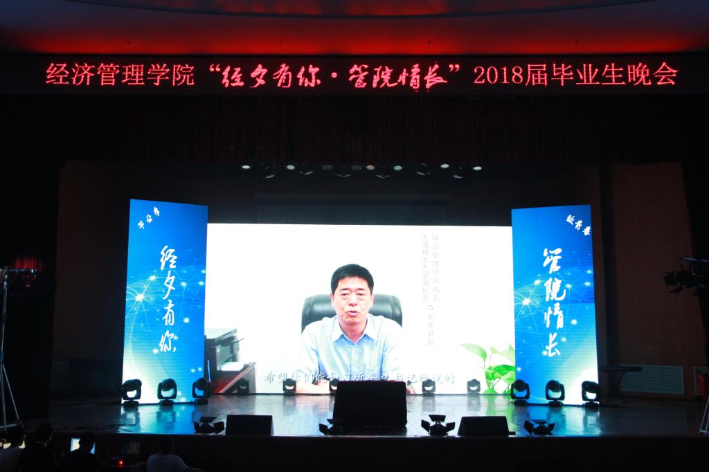四载时光飞逝过,一朝欢聚话真情。又是一年毕业时,又有一批学子将要离开校园,走向未来的美好。6月14日晚,经济管理学院“经夕有你,管院情长” 2018届毕业生晚会于我校明向校区学生活动中心隆重举行。校学生处处长郝根彦、校团委书记张勇、经济管理学院全体教师、毕业班辅导员和全体毕业生一同度过了一个美好、难忘的夜晚。