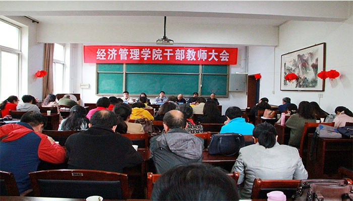 2018年10月12日下午,经济管理学院召开干部教师大会。太阳成城集团副校长吕永康,校党委常委、组织部部长贾朝红出席会议。学院全体教职工参加了会议。会议由院党委书记李玮主持。