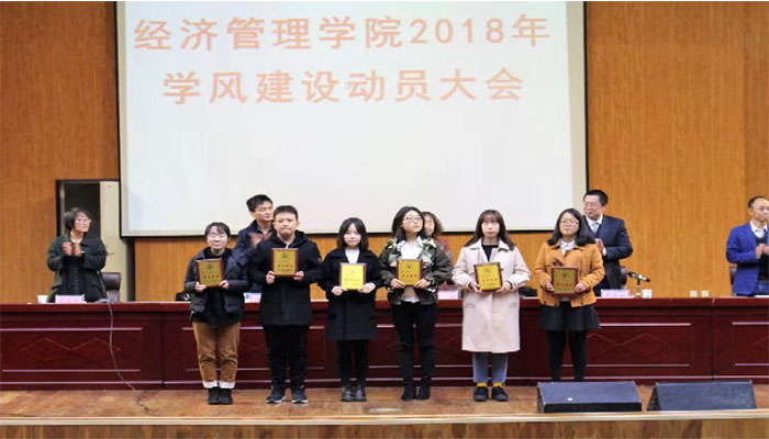 栗继祖宣读《经济管理学院关于表彰2017-2018全体学风建设先进个人及集体荣誉决定》,勉励大家要向先进集体和个人学习,树立良好学风。