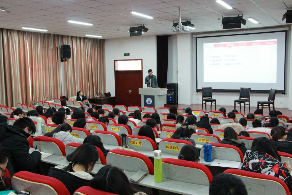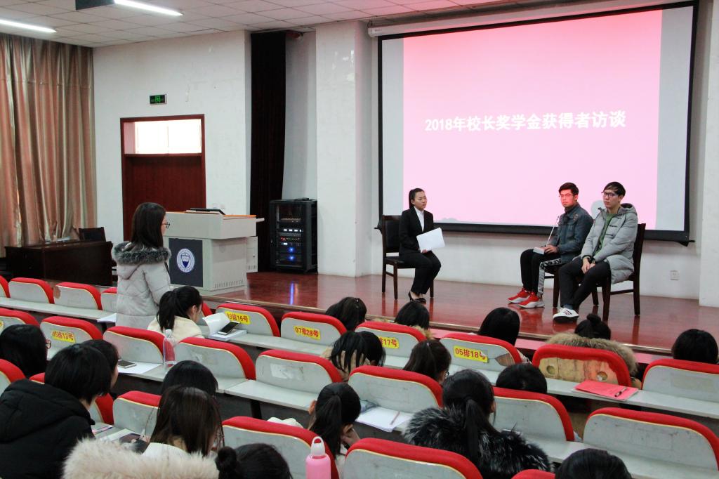 12月25日上午,经济管理学院于我校明向校区经管楼二层报告厅举行了校长奖学金获得者宣讲及访谈活动。主讲人为学院校长奖学金获得者梁鹏、田翰霖。学院全体17级会计同学聆听了宣讲。