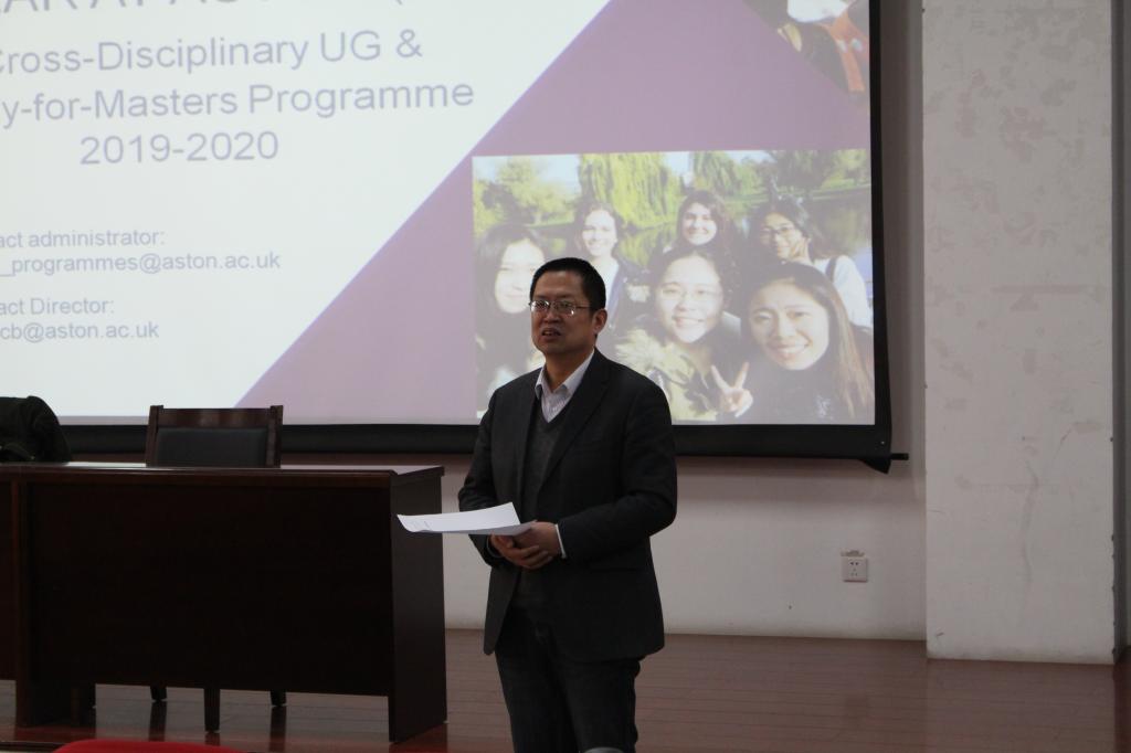 3月15日上午,经济管理学院邀请英国阿斯顿大学客人于我校明向校区经管楼二层报告厅作暑期培训班宣讲会。副院长(主持工作)栗继祖主持宣讲。