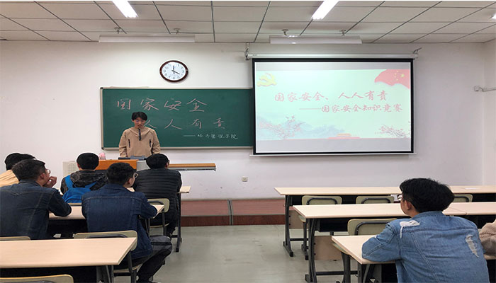 学院利用电子屏等媒介宣传国家安全法,印制了精美的宣传彩页,下发到各个宿舍,引导广大学生了解安全法、学习安全法。学院各班级还召开了安全法主题学习班会,由辅导员带领大家共同学习相关法规政策。学院学生会组织开展了安全法主题知识竞赛,通过竞赛的形式促进同学们对国家安全法相关知识的深入学习。4月15日下午,按照学校的统一安排部署,学院组织全体学生观看了“千万学生同上一堂国家安全教育课”视频,将国家安全教育推向纵深。