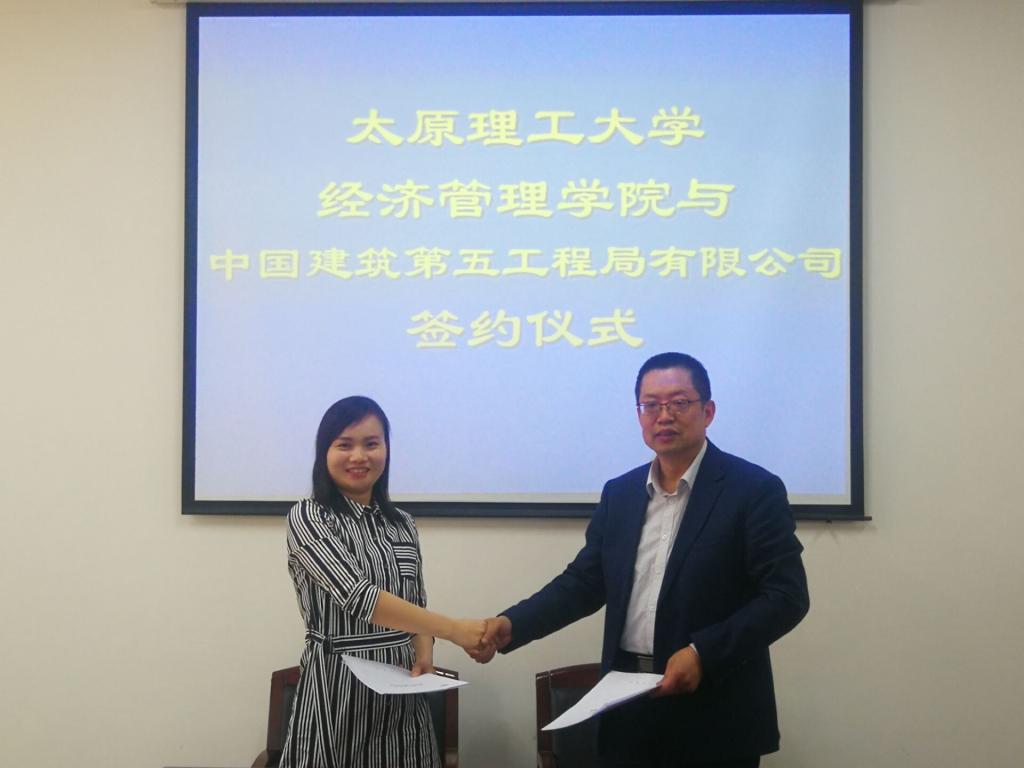 2019年5月10日上午,经济管理学院携手中国建筑第五工程局校企合作签约仪式交流座谈会在明向校区226会议室进行。