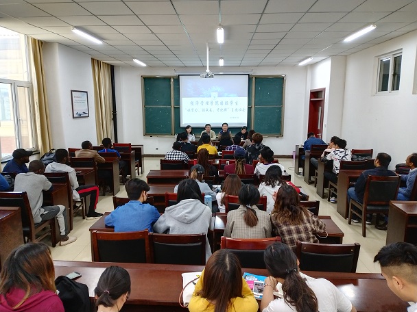经管学院教科办主任刘霄燕向国际生们解读了学校关于课程、考试等方面的规定和要求,着重强调了考试纪律,并向研究生们提出了积极主动与导师联系沟通的要求。国际学生所在班级的辅导员针对各自班级的国际生的学习、出勤、活动情况进行了分析点评,李宣颐向全体国际学生解读了学校对于纪律、守则方面的要求,国际生代表分享了自己学习、科研、生活的心得和感悟。