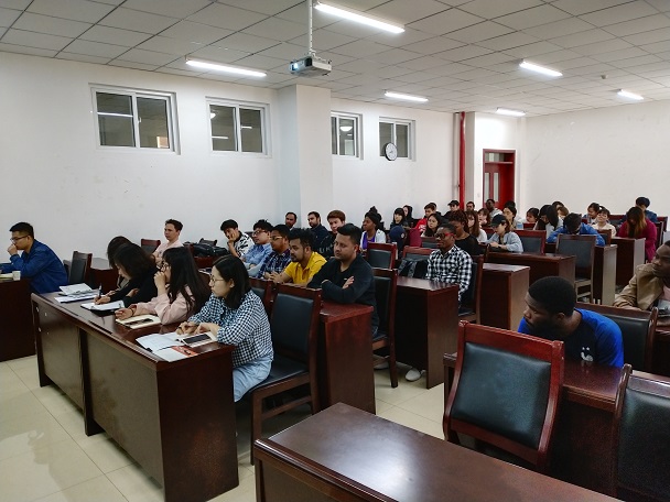 李文斌做了总结讲话,他强调,国际生来到中国、来到学校求学,务必要遵守中国的法律法规,遵守学校的规章制度,学校对于国际生的要求是一视同仁的,希望每一位国际学生都能够努力学习,顺利毕业。他还针对国际学生请假、课堂纪律以及宗教信仰等方面着重进行了强调。