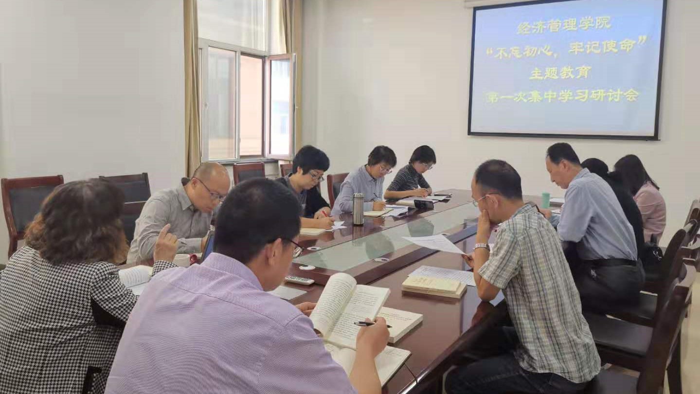 9月24日下午,经济管理学院在经管楼二层会议室开展“不忘初心、牢记使命”主题教育第一次集体学习,全体院领导、三办主任、团委书记等参加学习。