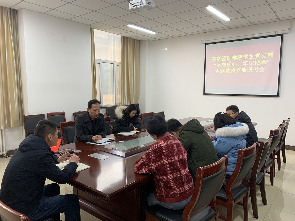 11月29日下午,经济管理学院在经管楼二层会议室召开学生党支部“不忘初心、牢记使命”主题教育交流研讨会,全体学生党支部书记参加会议,会议由院党委副书记杨振东主持。