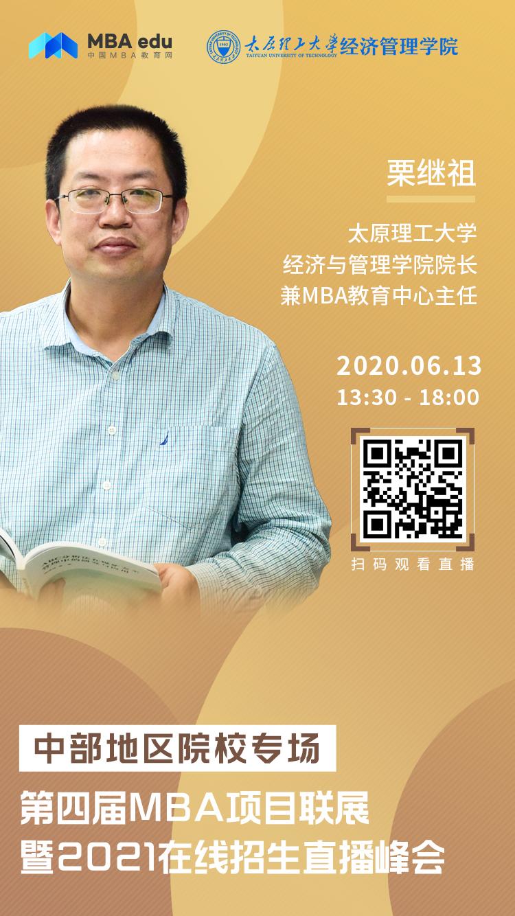近日,经济管理学院应邀参加第四届MBA/EMBA项目联展暨2021在线招生直播峰会,经济管理学院院长兼MBA教育中心主任栗继祖教授作为主讲嘉宾,围绕MBA项目招生等政策为广大考生进行线上讲解,累计吸引数万名考生线上观看,为学子们提供了招生信息,进一步加深了大家对我校MBA项目的了解与认识。