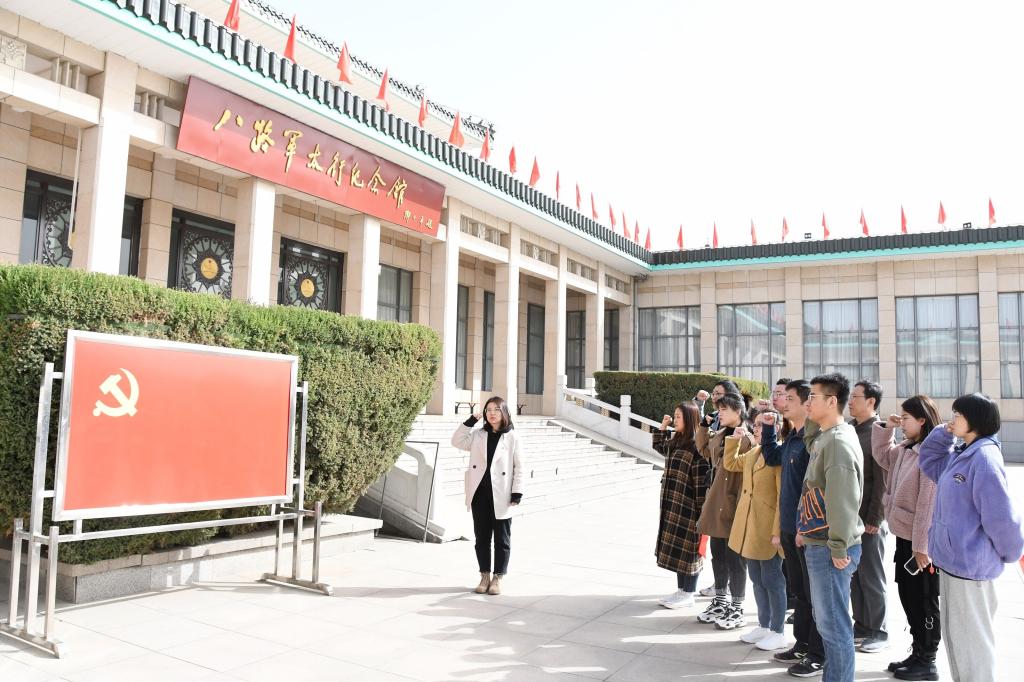 在武乡八路军纪念馆,全体学工干部现场接受党史教育,重温了抗战精神、八路军精神和太行精神。一幅幅生动的图片,一件件真实的器物,仿佛将时光穿越回了那个战火纷飞、保家卫国的战争年代,先烈们浴血奋战、以身许国的英雄形象又鲜活地呈现在大家面前,大家纷纷表示,要向先辈学习,以革命精神武装自己的头脑,不忘初心、牢记使命,以更加优异的工作业绩为学校“双一流”建设作出贡献,向建党100周年献礼。