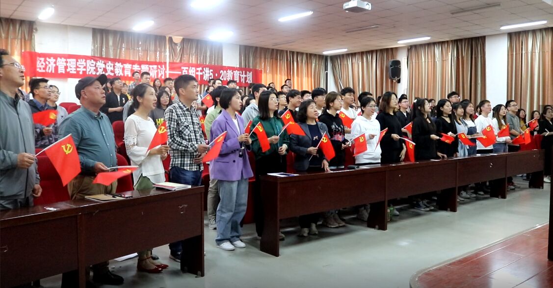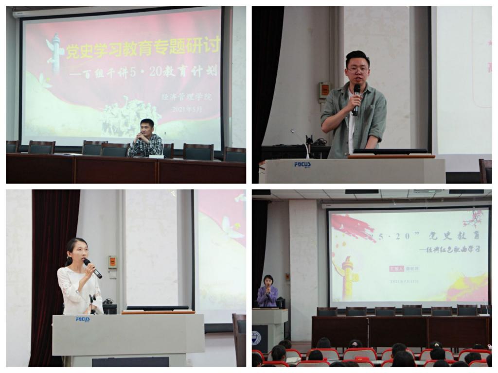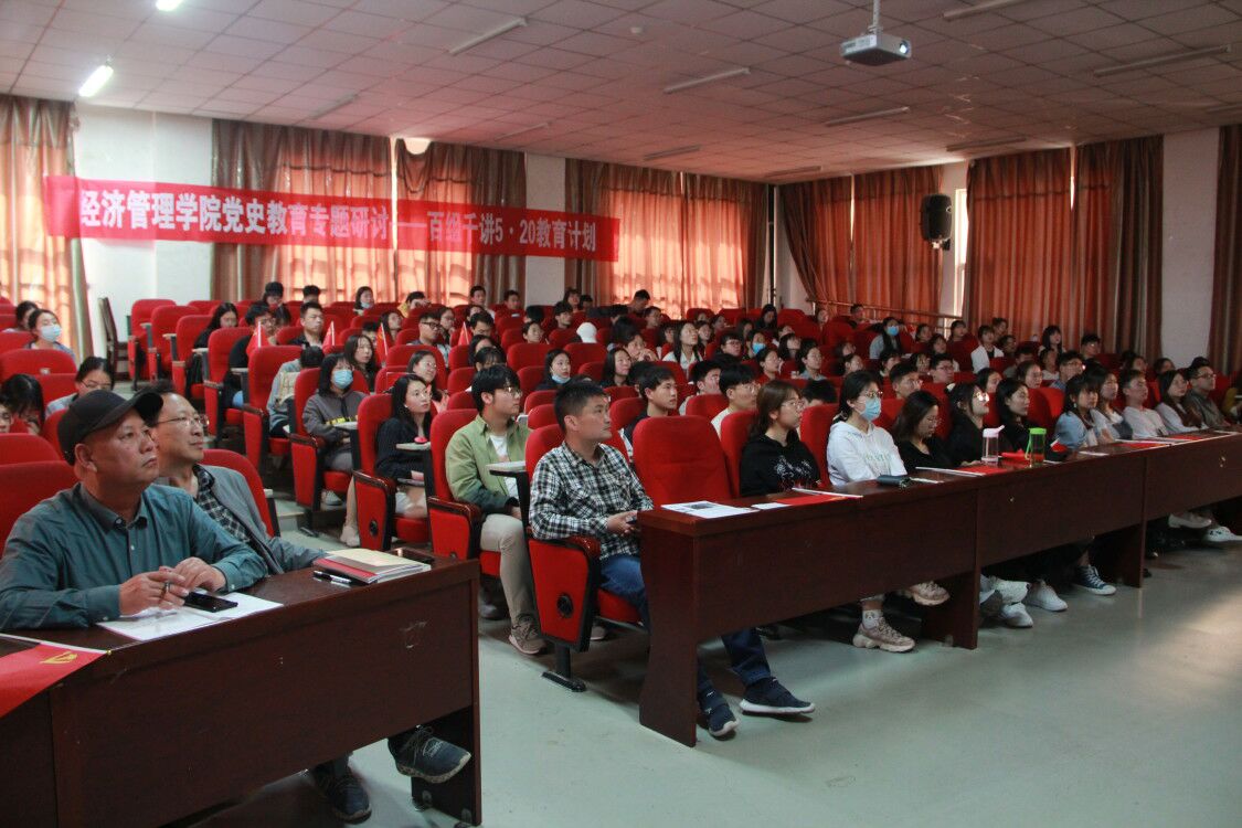 5月11日下午,经济管理学院党委在学院二层报告厅组织开展了以“百组千讲5•20教育计划”为主题的党史学习教育第四次集体学习研讨,院党委书记李玮主持。