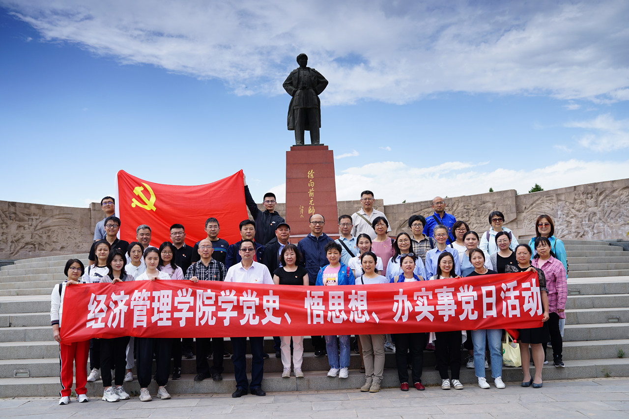 为进一步坚定党员的理想信念,大力弘扬爱国主义精神,2021年6月4日,经管学院党委组织党员教师赴牛驼寨烈士陵园开展“学党史、悟思想、办实事”主题党日活动。