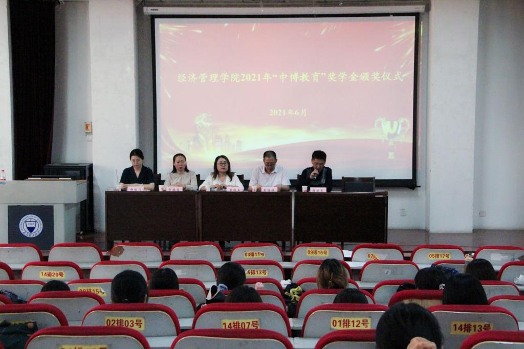 6月28日,经济管理学院在学院报告厅举行“中博教育”奖学金颁奖仪式,中博教育山西区总经理翟暄玉、ACCA(国际注册会计师)项目负责人李艳霞、院长栗继祖、院党委副书记杨振东、院团委书记郝晓飞出席仪式,全体获奖学生、各班学生代表参加了颁奖,仪式由杨振东主持。