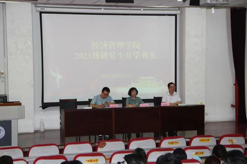 9月15日下午,经济管理学院在学院报告厅隆重举行2021级研究生开学典礼暨“开学第一课”。院党委书记李玮、院长栗继祖出席典礼,全体2021级博士、学术型研究生、导师代表和教学管理人员参加了开学典礼。