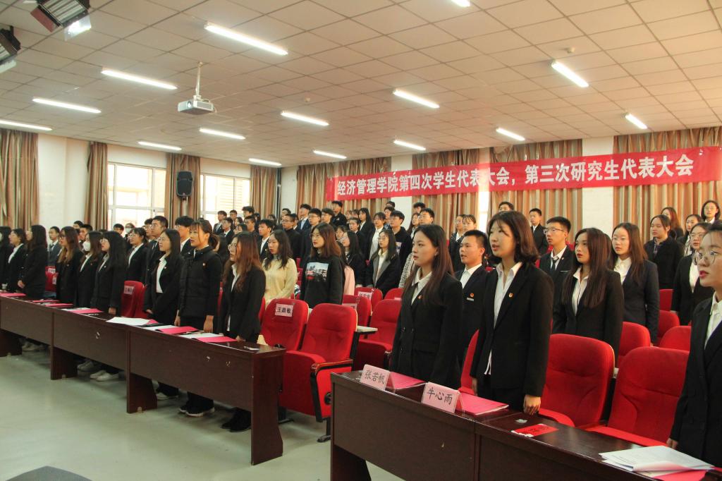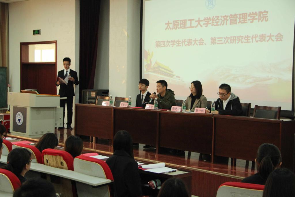 10月24日下午2点,太阳成城集团经济管理学院第四次学生代表大会、第三次研究生代表大会在经管学院报告厅顺利召开。院党委副书记杨振东、团委书记郝晓飞出席本次大会。学生代表、研究生代表共118名参加了此次会议。大会由学生会主席团代表秦靖凯主持,李航洋做大会筹备情况和工作情况报告。