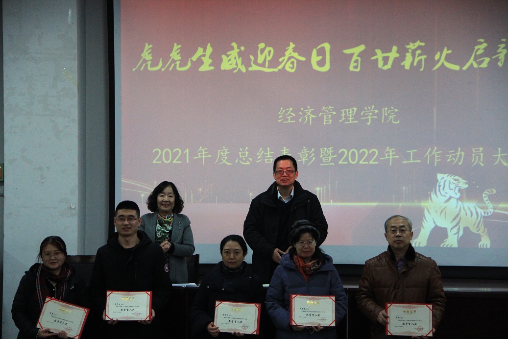 1月6日,经济管理学院召开“2021年度总结表彰暨2022年工作安排”全院教职工大会,隆重表彰了一批在教学、科研和管理等领域涌现出的优秀教师。