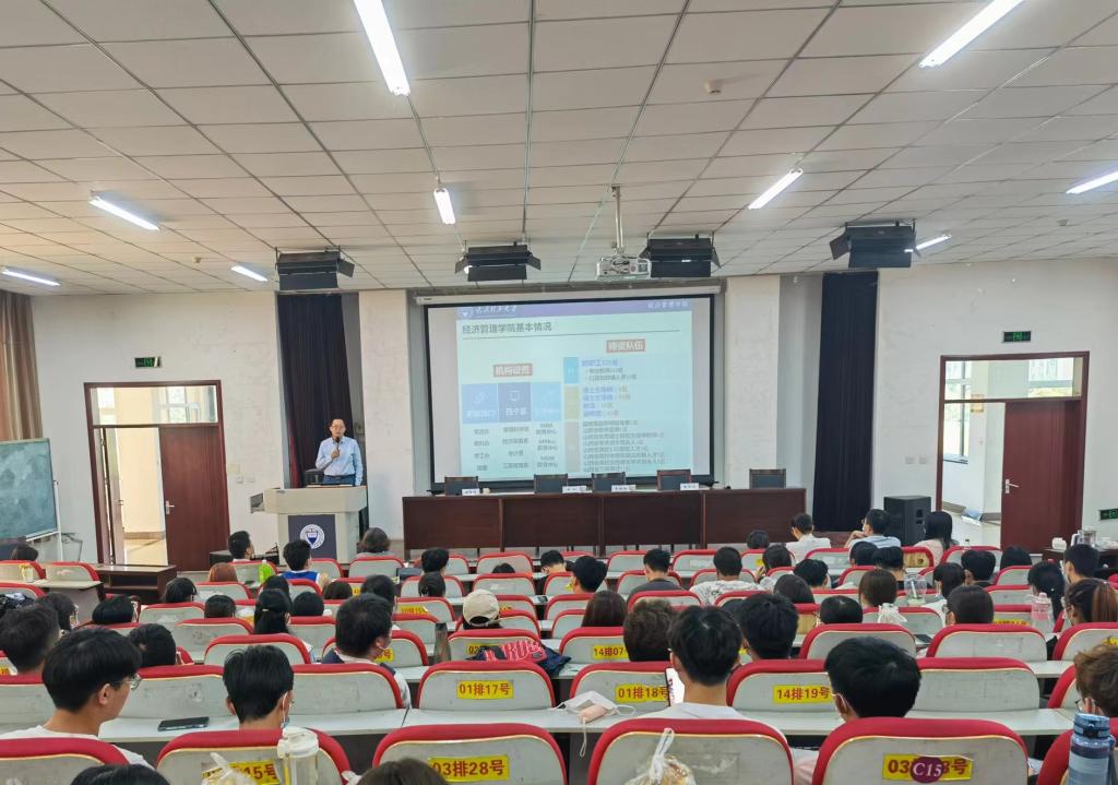 为了帮助2021级学生充分认识院情院貌,深入了解学院发展情况,更好的适应专业学院的学习生活,尽早融入学院“大家庭”,经济管理学院于9月1日中午在学院报告厅召开2021级学生见面会,全体院领导、团委和学工办负责人、2021级辅导员和全体在校的2021级本科生参加,会议由院党委副书记杨振东主持。