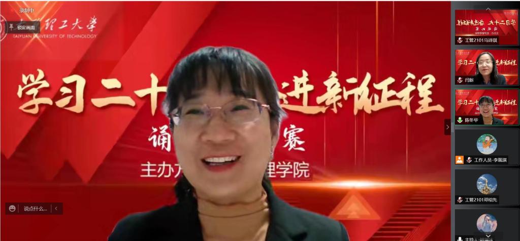 为学习宣传贯彻党的二十大精神,团结和凝聚青年力量,引领广大团员进一步学党史、悟思想、办实事、开新局,11月26日晚七点,经济管理学院通过线上方式开展了“学习二十大,奋进新征程”诵读比赛。