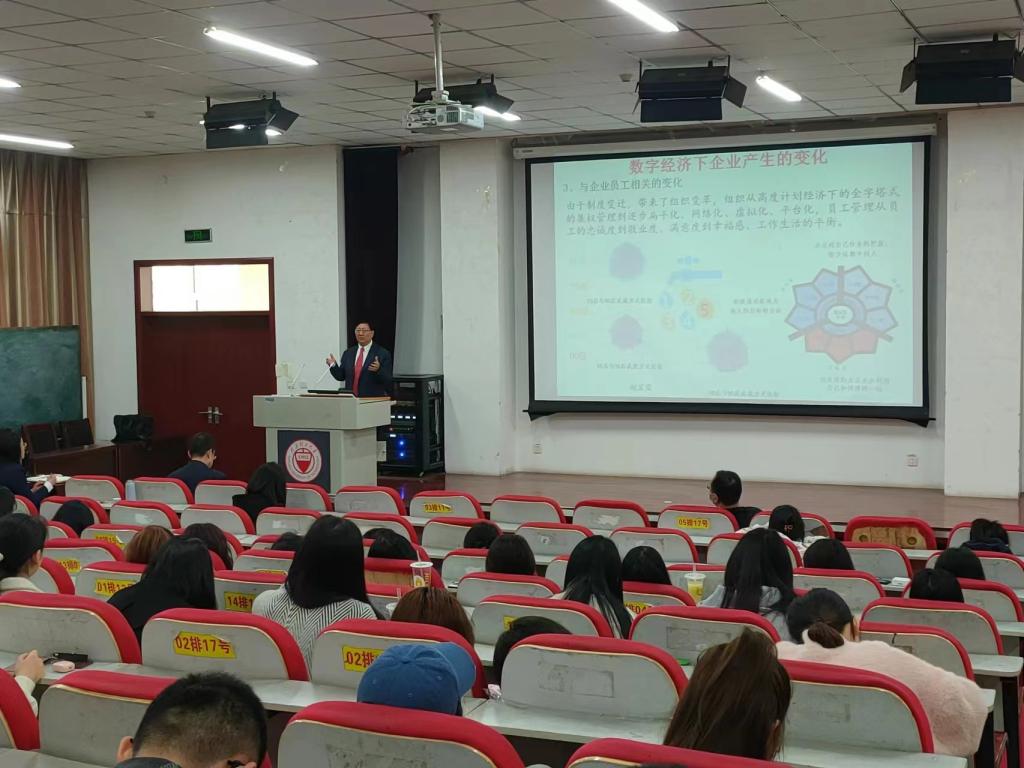4月28日上午,南京大学赵曙明教授应邀前来经济管理学院进行学术交流,并作了题为“数字经济时代:人力资源管理的转型与发展”的学术报告。报告由经济管理学院党委书记闫新主持,院长栗继祖和部分师生聆听了本次报告。