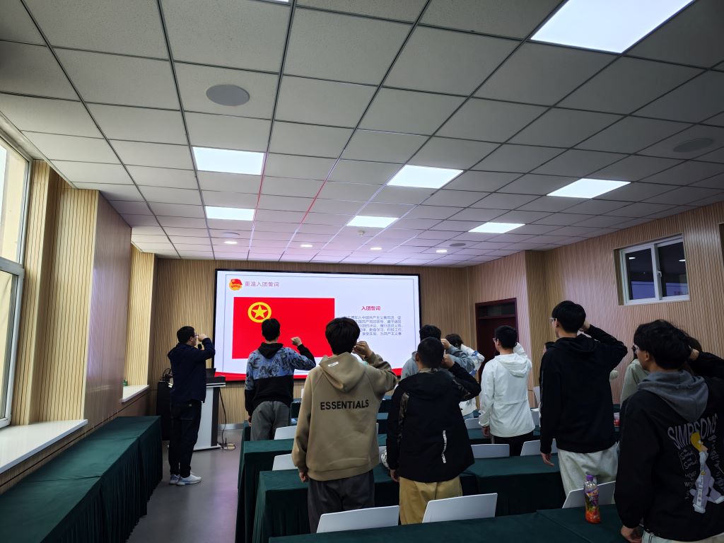 王戎带领同学们重温入团誓词,提醒同学们时刻牢记自己是一名共青团员,自觉加强组织性、纪律性,进一步加强学生干部的向心力与战斗力。并宣读了新时代经管学子倡议书。