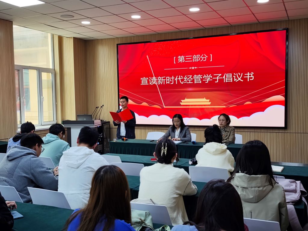 广大经管学子在新时代勇攀高峰,贡献智慧力量,展现青春风采,以极大的爱国热情,坚定爱国情怀,坚守人民立场,把爱国报国的热血斗志投入祖国高质量发展的伟大事业中来,为实现中华民族伟大复兴的中国梦而奋斗。