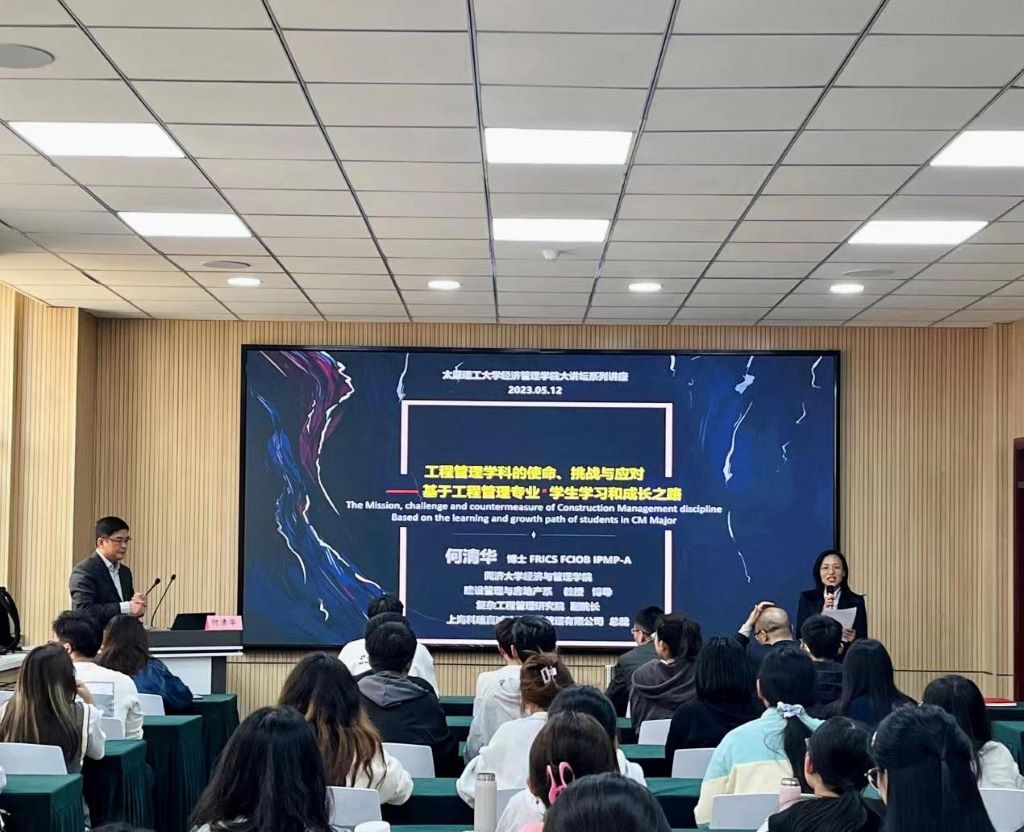何清华教授详细阐述了工程管理专业的特点以及它在当今现实生活中的应用,介绍了一系列关于项目管理的权威书籍和项目管理公司的诸多实操案例,强调了整合资源以及构建项目管理体系的重要性。他指出工程管理专业学生在未来从事项目管理等工作时,不仅需要有技术能力,更重要的是具备主动沟通能力、目标导向能力以及自我管理自我控制能力。通过讲座,师生们对当代工程管理专业特点和项目管理工作实际有了更加深入的理解。