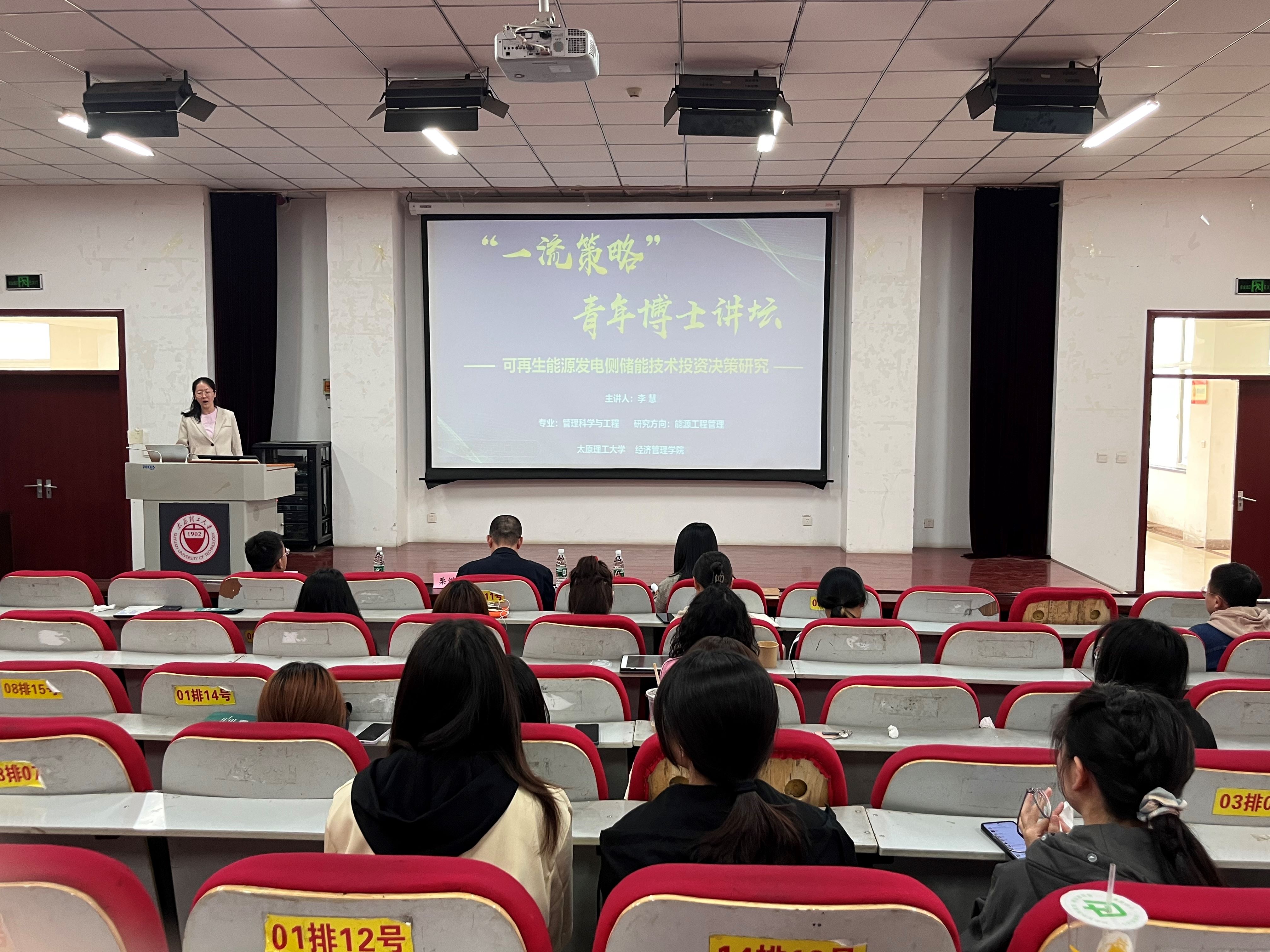 5月10日上午,经济管理学院于学院二楼报告厅举办“一流策略”青年博士讲坛,2019级博士研究生李慧分享了自己的科研成果,山西省生态环境规划和技术研究院高级工程师黄雅婷、经济管理学院院长栗继祖,副院长姚西龙做点评,全体一、二年级硕博研究生参加。