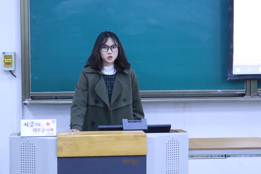 接下来王静、苏珂莹、杨媛、吴明泉四位已被推荐面试攻读硕士研究生的大四学生代表依次上台分享自己的成长经历、学习经验,对大一新生今后的发展有着一定的参考意义。
