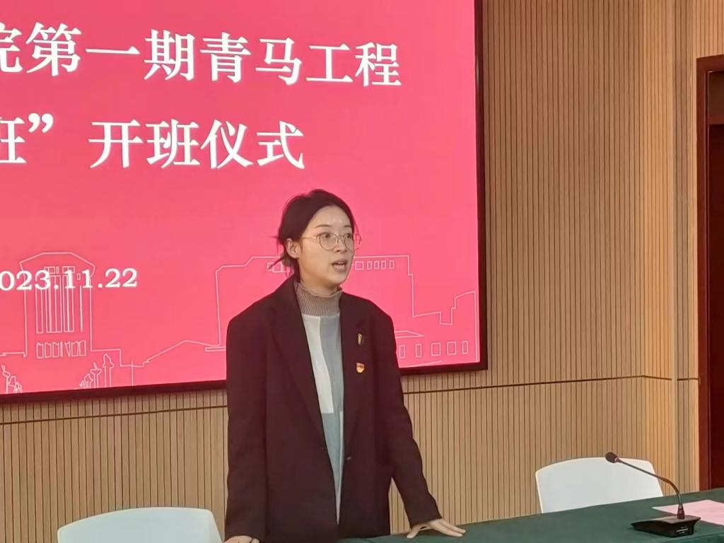 在团歌声中,本次青马工程“萤火班”开班仪式正式拉开帷幕,闫新发表讲话,她强调了开展青马工程培训的重要意义,指出青马工程“萤火班”是加强广大青年思想引领的重要举措,是学生青年骨干培养的重要载体。希望参与青马工程“萤火班”的学员能够树立远大理想信念,端正学习动机,强化政治理论学习,争当青年先锋榜样,起到模范带头作用,做马克思主义的拥护者、践行者、传播者,在培训过程中不断扩充知识,不断总结学习工作方法,成长为一名优秀的青年马克思主义者。