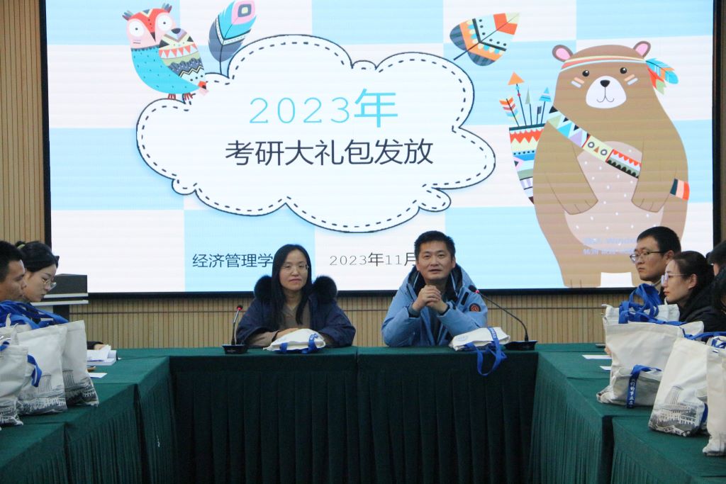 寒风侵万物,暖意浸人心,经济管理学院考研大礼包如约而至。11月24日,经济管理学院在学院229会议室为2024届考研学子发放考研大礼包。院党委书记闫新,院党委副书记杨振东,院学工办副主任张志卿,院团委副书记杨慧瑶,毕业班辅导员以及部分考研学生代表参加。