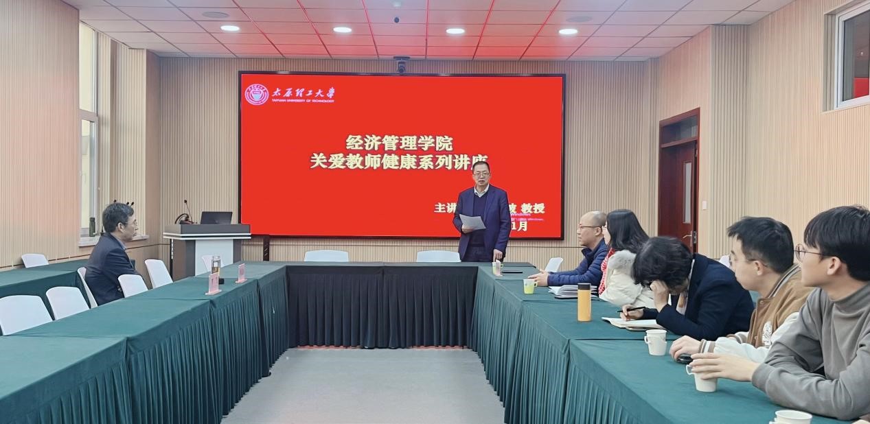 经济管理学院工会充分发挥工会组织联系教职工的桥梁纽带作用,时刻将关爱、温暖送到教职工身边。11月27日,院工会在学院229会议室举行了关爱教师健康系列讲座,本次讲座邀请了山西白求恩医院心外科主任杨灵波主任医师和山西肿瘤医院乳腺科主任罗飞主任医师为广大教职工进行健康知识科普,提升了全体教职工健康自我防范、自我管理的意识。