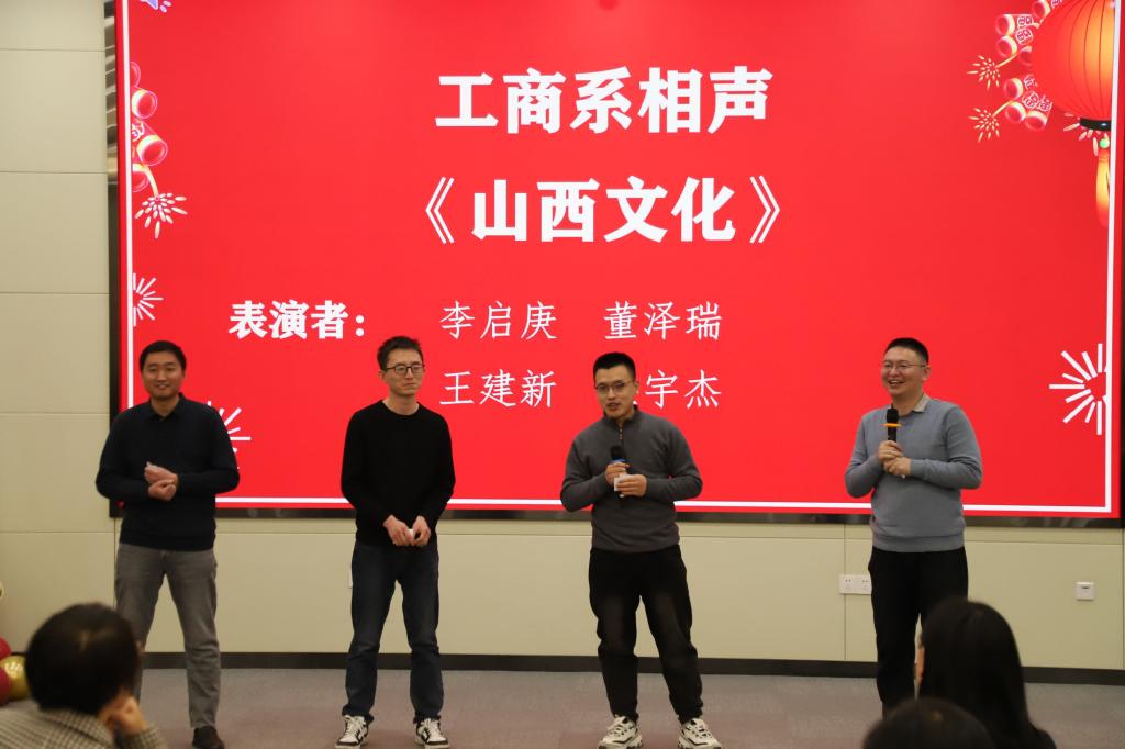 工商系老师带来相声《山西文化》,为茶话会增添欢声笑语,巧妙地展示了山西悠久的文化底蕴。随后,学院对获得优秀共产党员、优秀党务工作者与先进党支部的个人和集体颁发了证书。