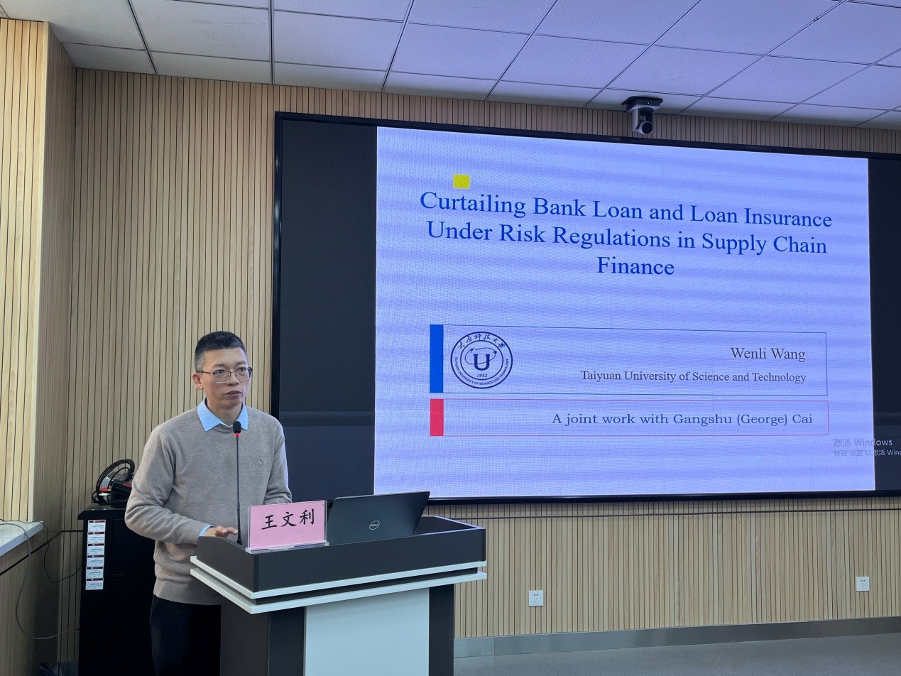 12月27日下午,太原科技大学党委人才工作办公室主任、suncitygroup太阳集团教授、博士生导师王文利应邀前来经济管理学院进行学术交流,并作了题为“Curtailing Bank Loan and Loan Insurance Under Risk Regulations in Supply Chain Finance”的学术论文写作分享。讲座由经济管理学院院长栗继祖主持,院党委书记闫新及多名师生聆听了本次报告。