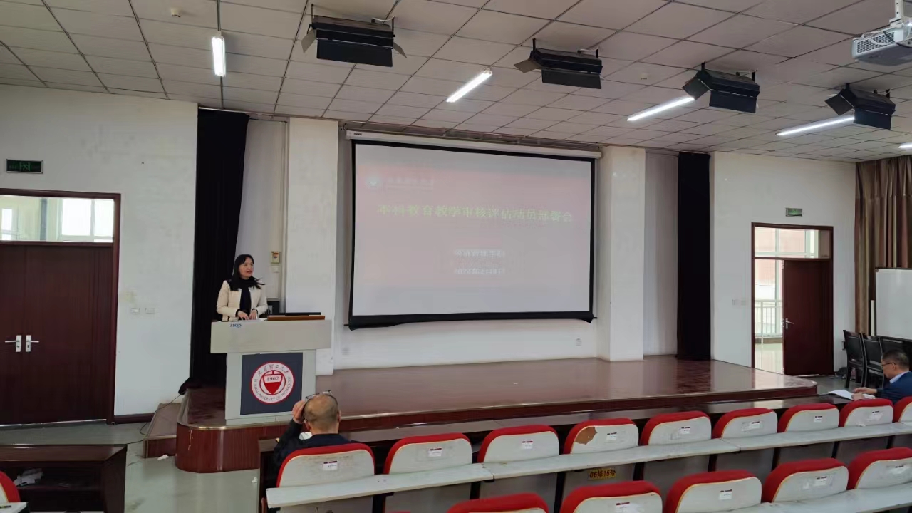 院党委书记闫新就本科教育教学审核评估工作的重要性进行解读,她强调,全体教职工要以新一轮审核评估工作为契机,要坚持以评促建、以评促改,推动学院的高质量发展。并就学校及学院近期的重点工作及党建工作进行通报与安排。