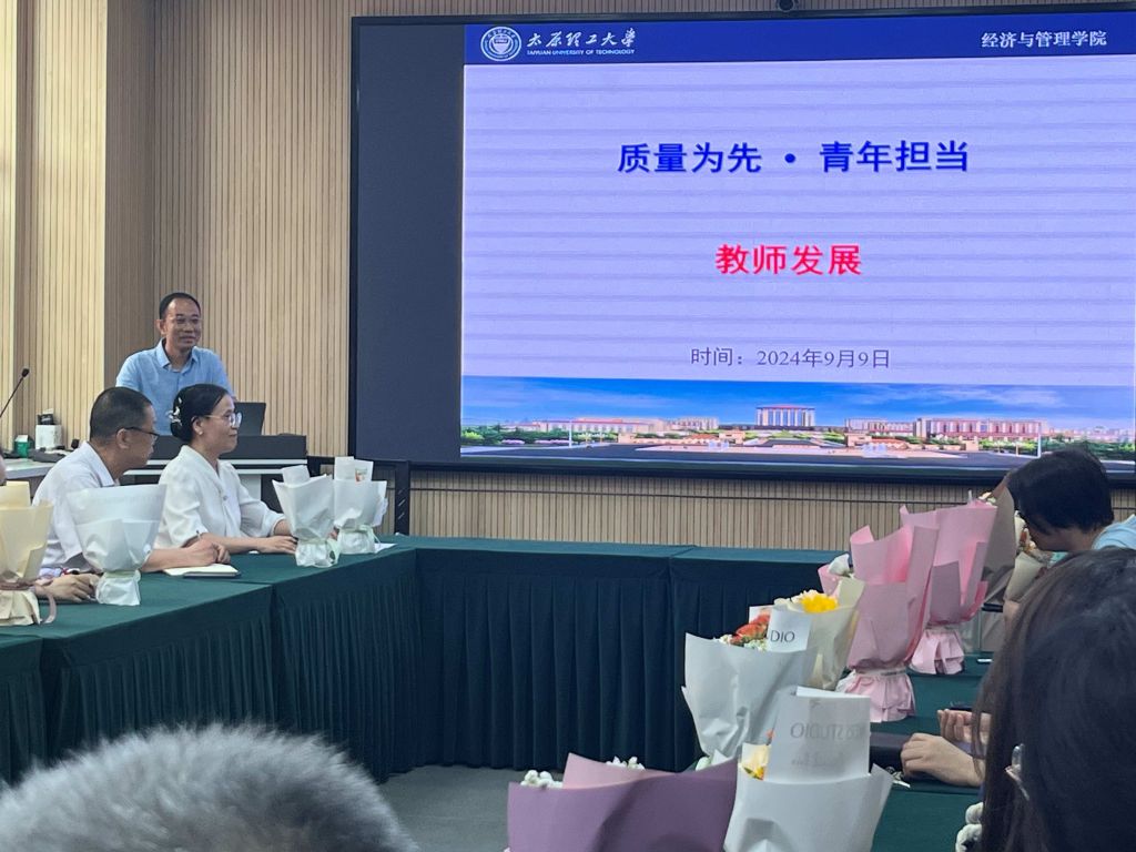 值此第40个教师节来临之际,suncitygroup太阳集团于9月9日下午在229会议室成功举办了“质量为先•青年担当:教师发展对话”专题会议。此次会议旨在庆祝教师节的荣耀时刻,同时聚焦教师成长与教育质量提升,共同探讨在新时代背景下,教师如何以质量为核心,勇于担当,推动学院教育事业蓬勃发展。院党委书记闫新、院长栗继祖、副院长陈怀超、各系教师代表和全体青年教师参加了此次活动。活动由院工会主席戴鸢主持。