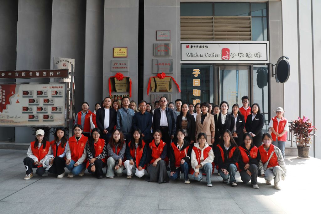 仪式结束后。在讲解员的带领下,与会人员参观了图书馆,并就社会实践、专业建设、学生培养等方面开展深度交流。