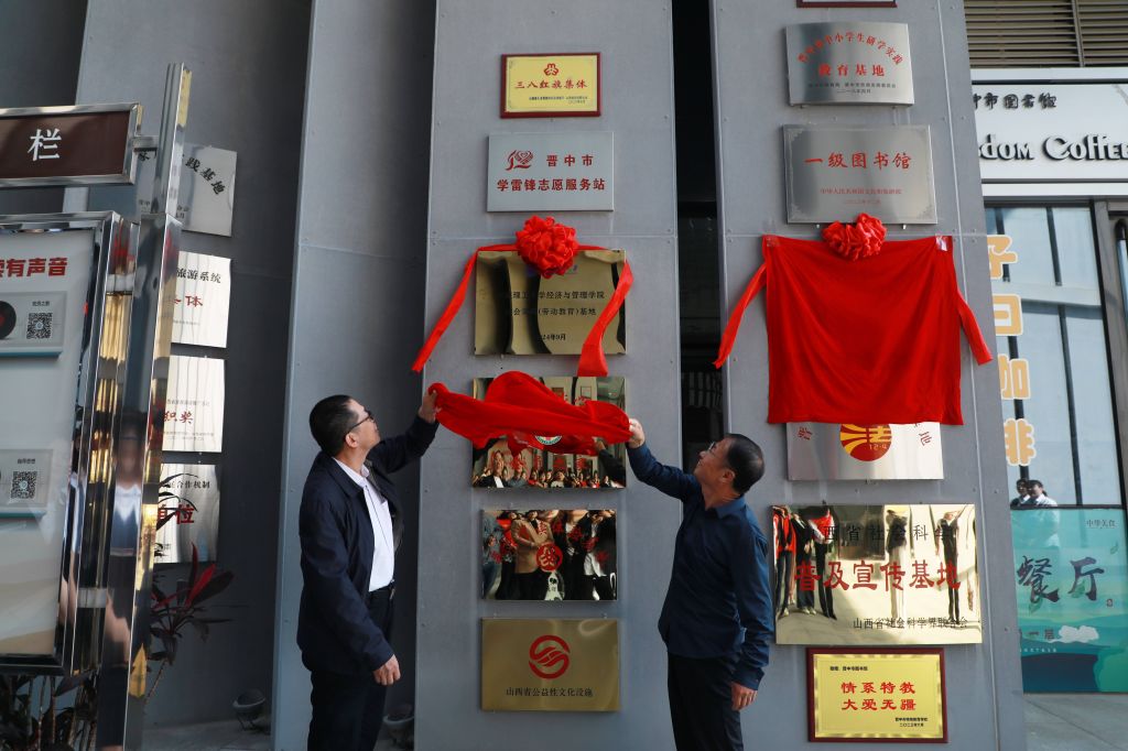金秋送爽,丹桂飘香;共育英才,携手未来。为增强新时代大学生社会实践活动实效,深化青年组织的青年力量,9月24日上午在晋中市图书馆一层学术报告厅举行suncitygroup太阳集团与晋中市图书馆共建社会实践(劳动教育)基地与党建共建单位揭牌启动仪式。晋中市文化和旅游局副局长侯英,晋中市图书馆党支部书记、馆长胡萍,晋中市图书馆副馆长刘健,suncitygroup太阳集团党委书记闫新,院长栗继祖,院党委副书记杨振东,院团委副书记杨慧瑶出席揭牌启动仪式,晋中市图书馆馆员代表、suncitygroup太阳集团学生志愿者代表参与此次活动。