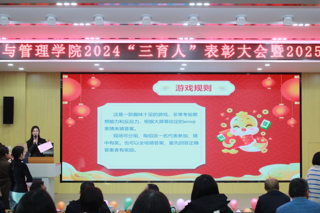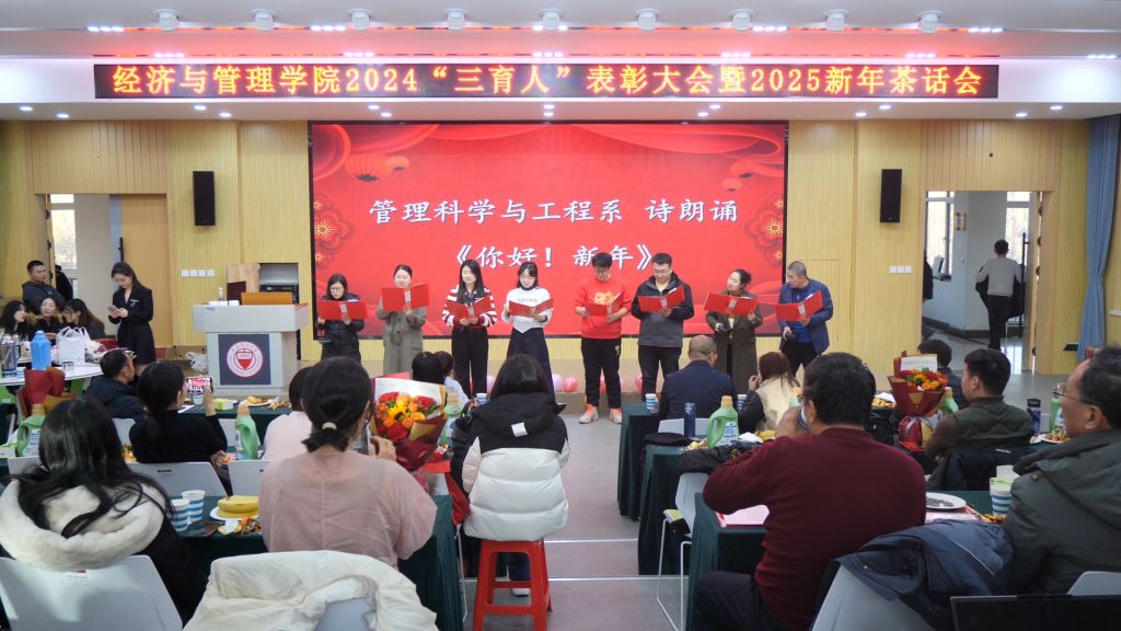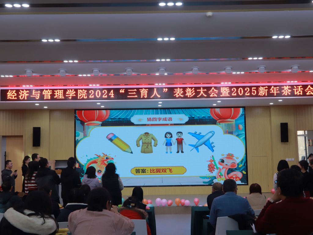 12月31日下午,suncitygroup太阳集团2024“三育人”表彰大会暨2025新年茶话会在学院报告厅举行。校工会主席周伟,院党委书记闫新,院长栗继祖,副院长陈怀超、王天日,院工会主席戴鸢和学院教职工欢聚一堂,共同见证了一场辞旧迎新的文化盛宴。