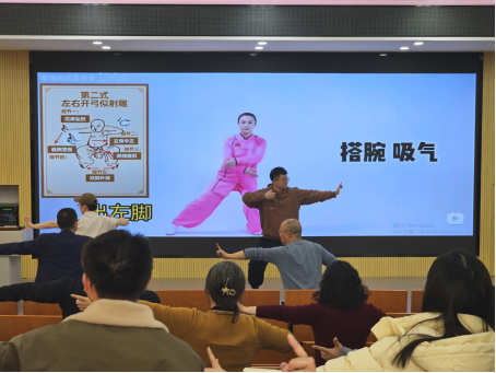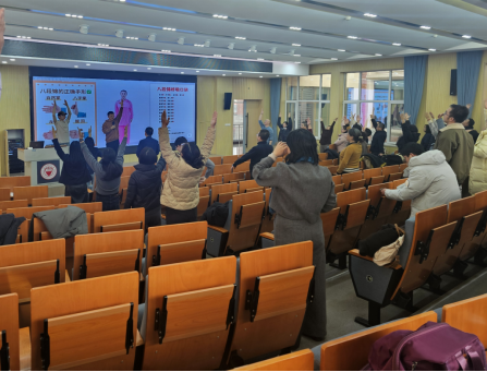 “八段锦”是我国传统的健身气功,动作简单易学,健身效果显著,深受广大群众喜爱。此次活动不仅让老师们在繁忙的工作之余放松了身心,增强了体质,也进一步弘扬了中华优秀传统文化,营造了积极向上、团结和谐的校园文化氛围。