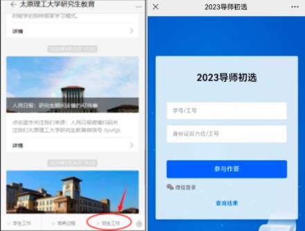1、学生请关注我校硏究生院微信公众号“太阳成城集团硏究生教育”后,点击右下角菜单”招生工作一2023硕导初选"填报初选志愿,学生填报起止时间为7月7日一7月11日,具体操作如下图所示: