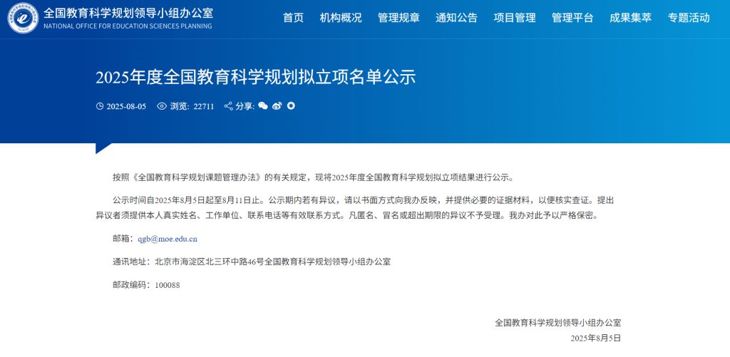 8月5日,全国教育科学规划领导小组办公室发布了“2025年度全国教育科学规划拟立项名单公示”,我院郭淑娟教授申报项目获批(见下表),占全校立项总数的50%。